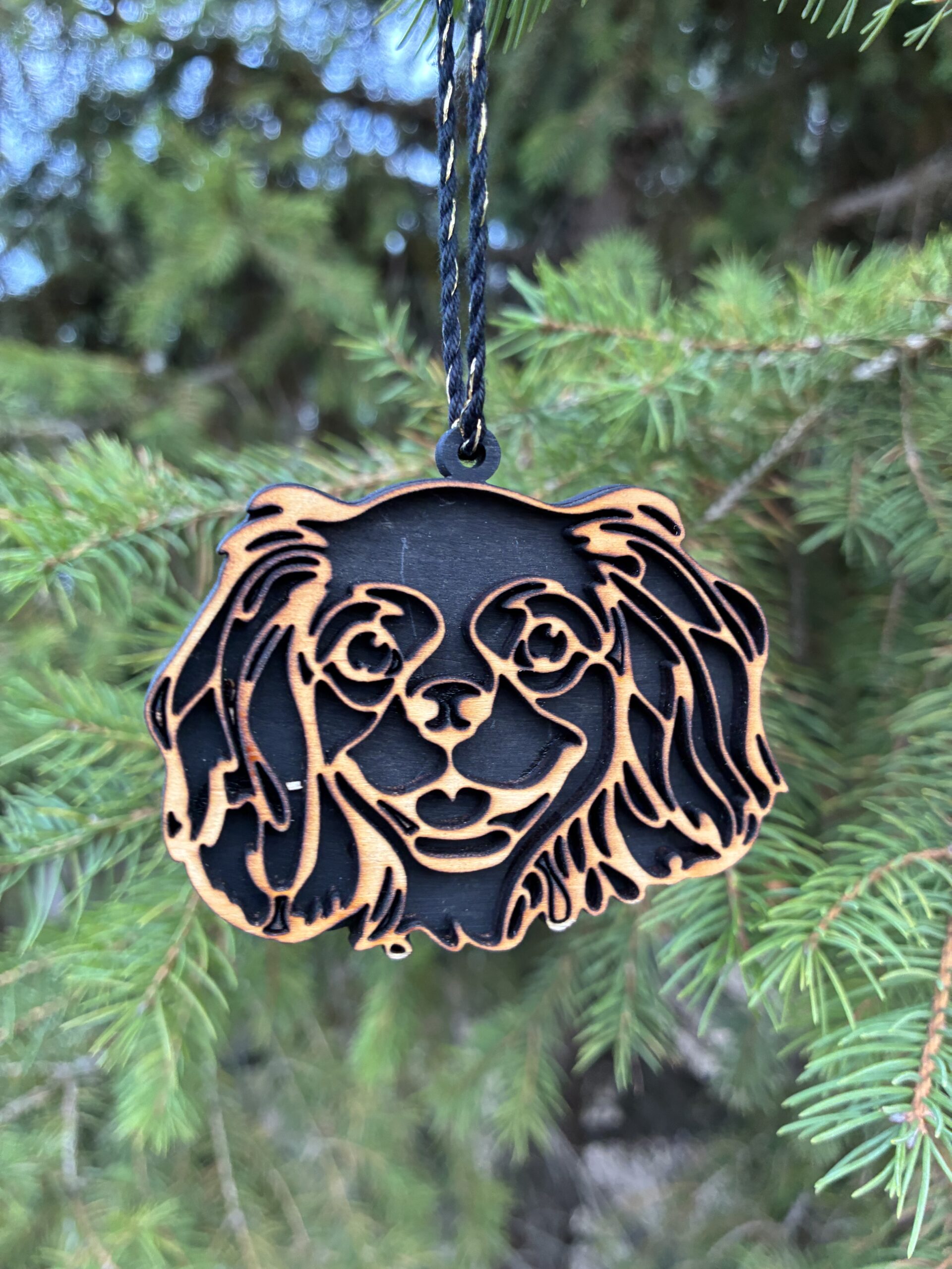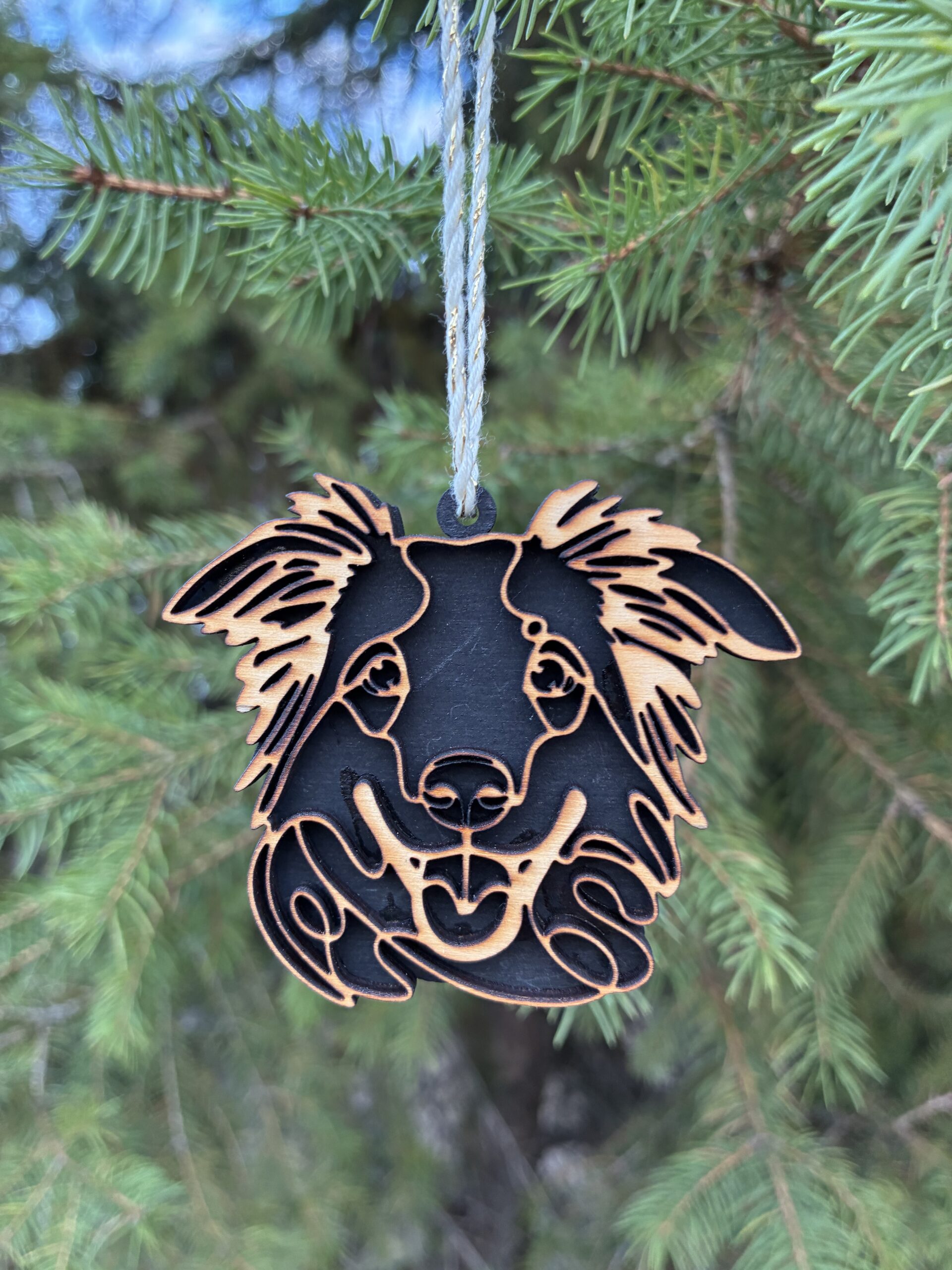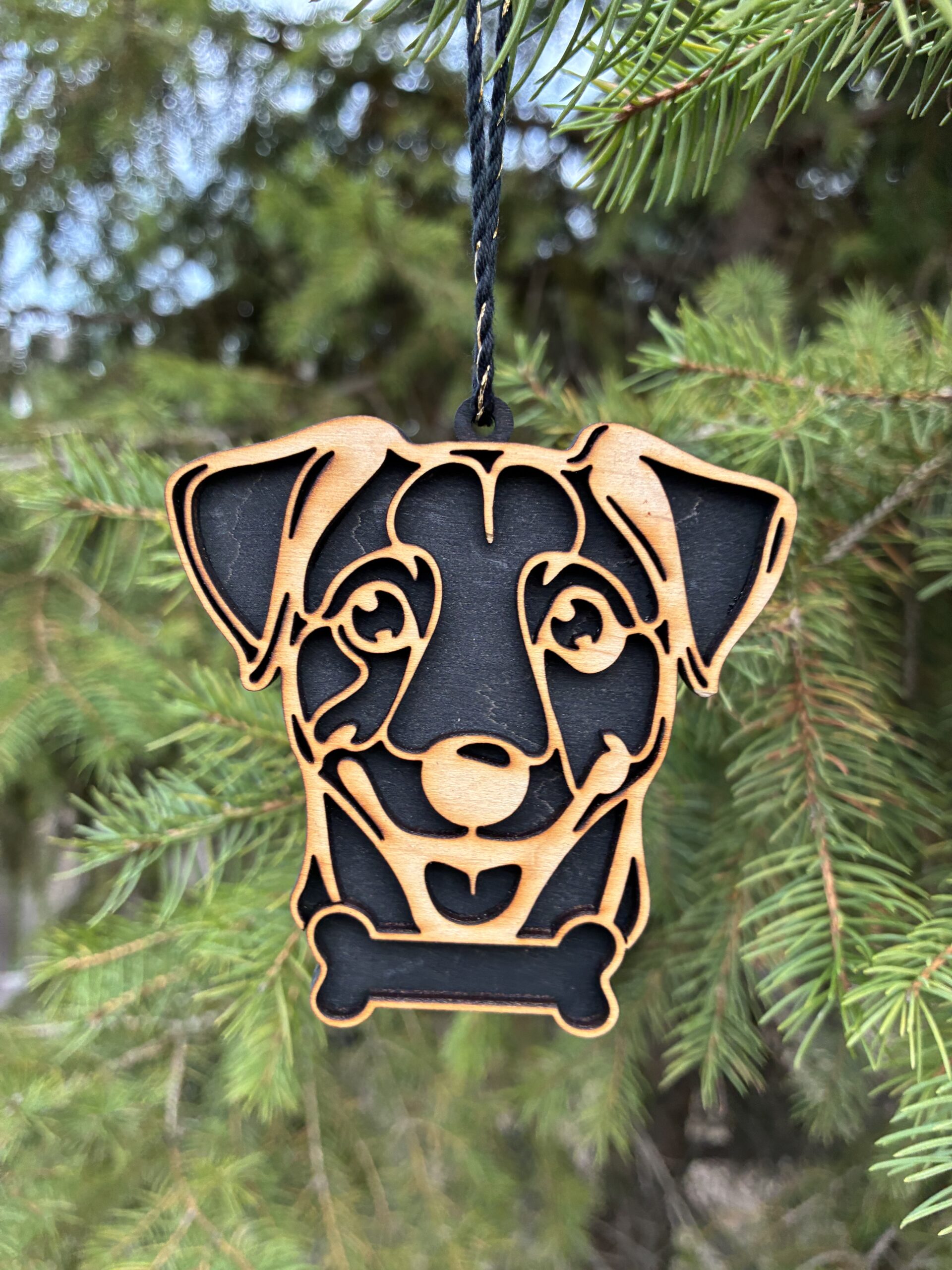 Egyedi, 3D hatású fa kutyás karácsonyfadísz, amely tökéletes választás kutyabarátoknak és gazdiknak az ünnepi dekorációhoz. Kézzel készített, természetes fából készült dísz, precíz lézervágással és kétoldalas kidolgozással. Fekete vagy fehér háttérrel rendelhető, valamint kérhető gravírozott névvel, így igazán személyes karácsonyi ajándék vagy emlék lehet. Körülbelül 9 cm-es méretével ideális karácsonyfadísz, amely meghitt hangulatot és egyedi megjelenést ad az ünnepi dekorációnak.