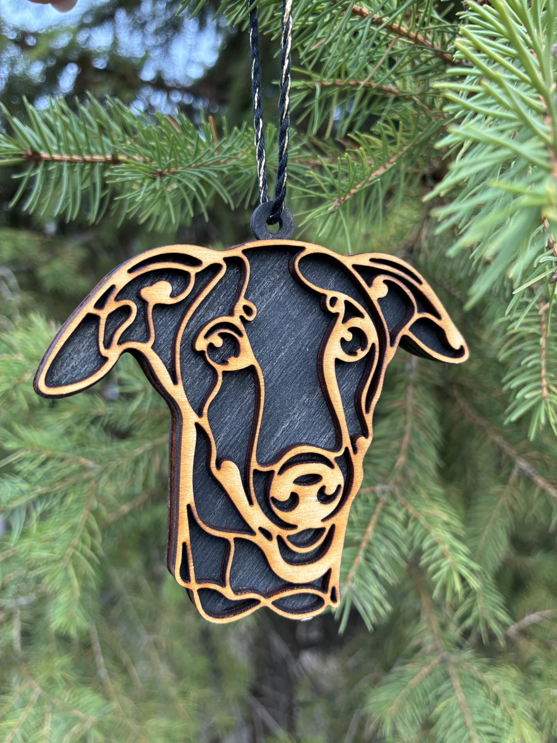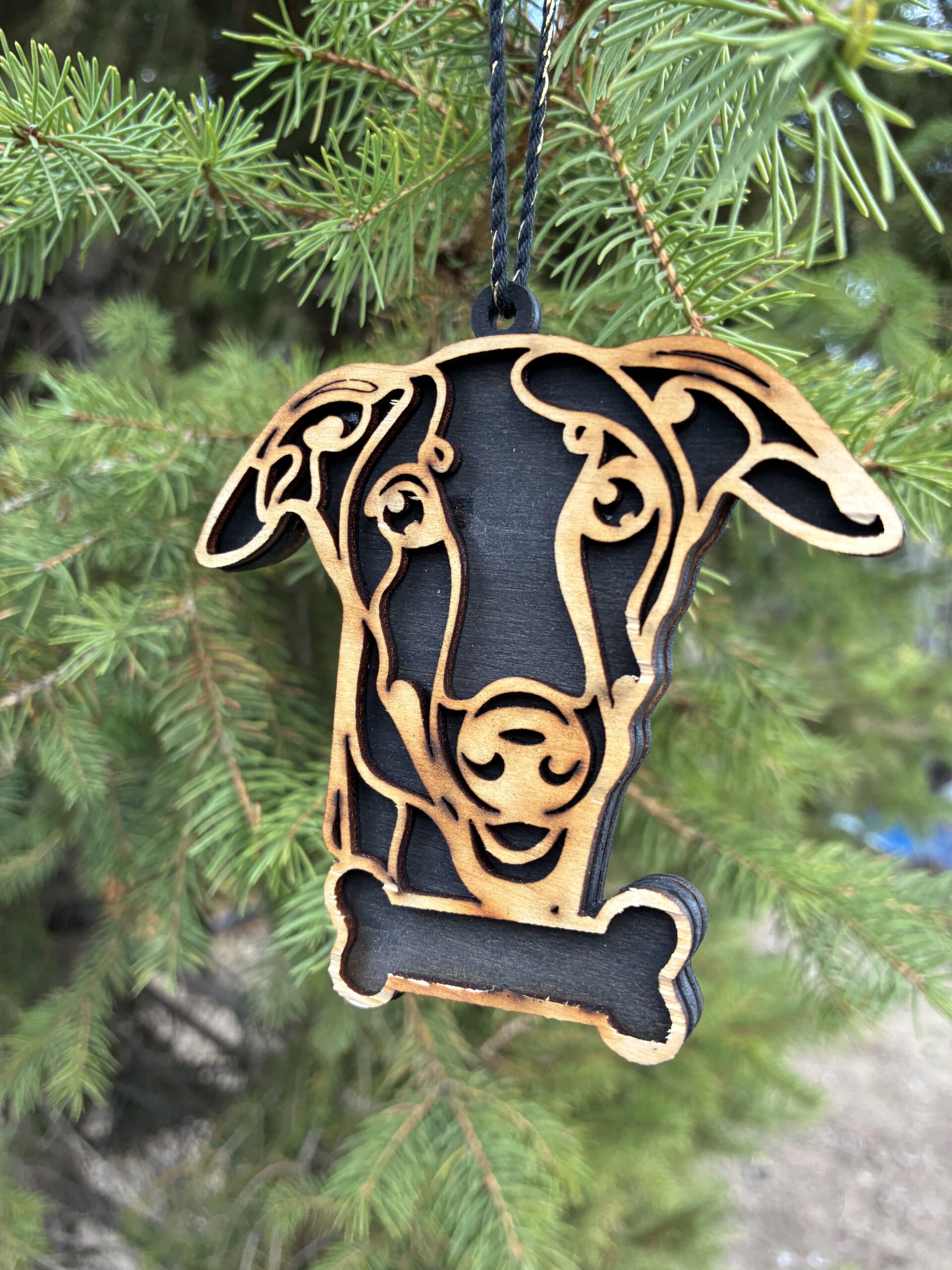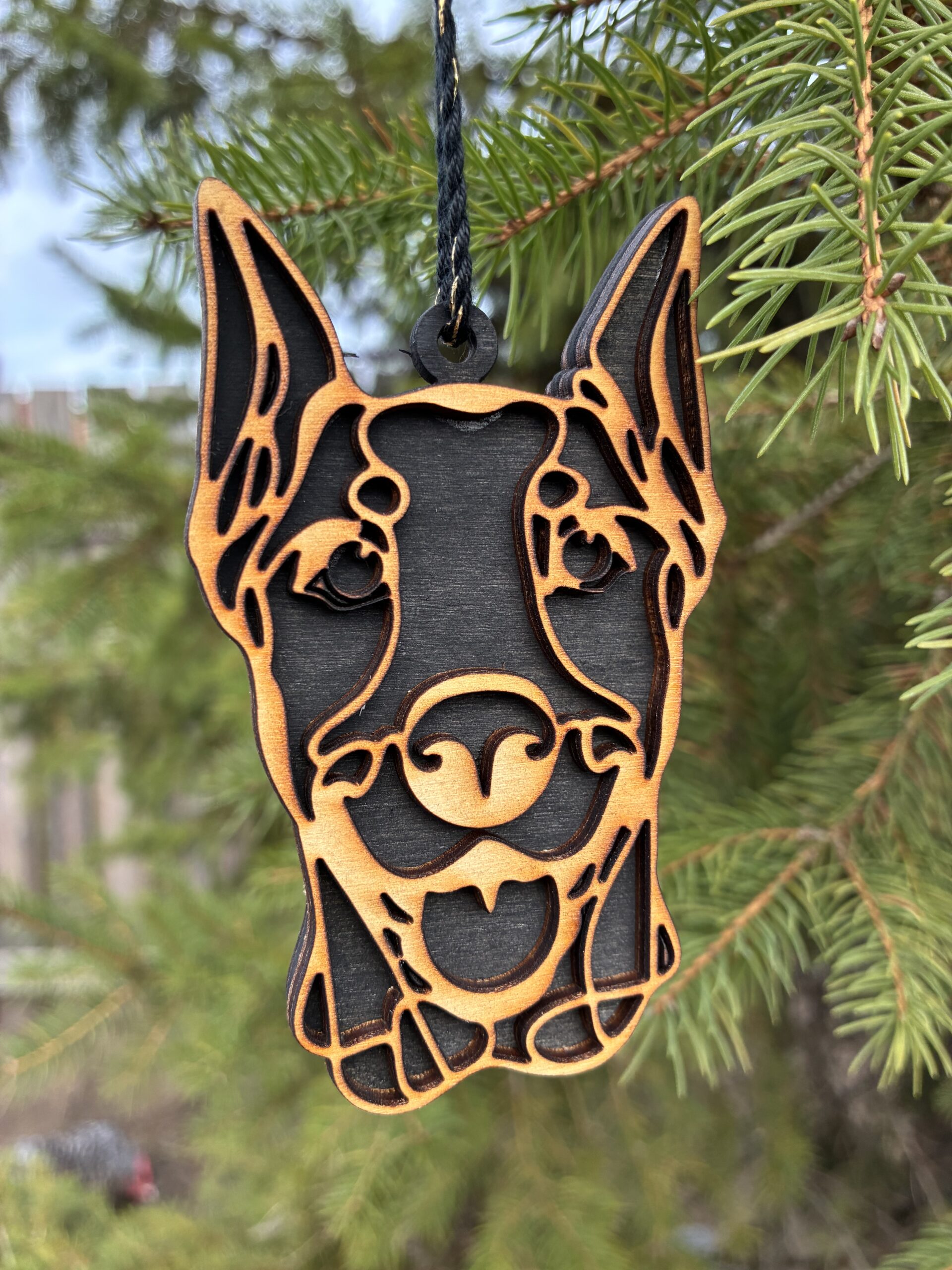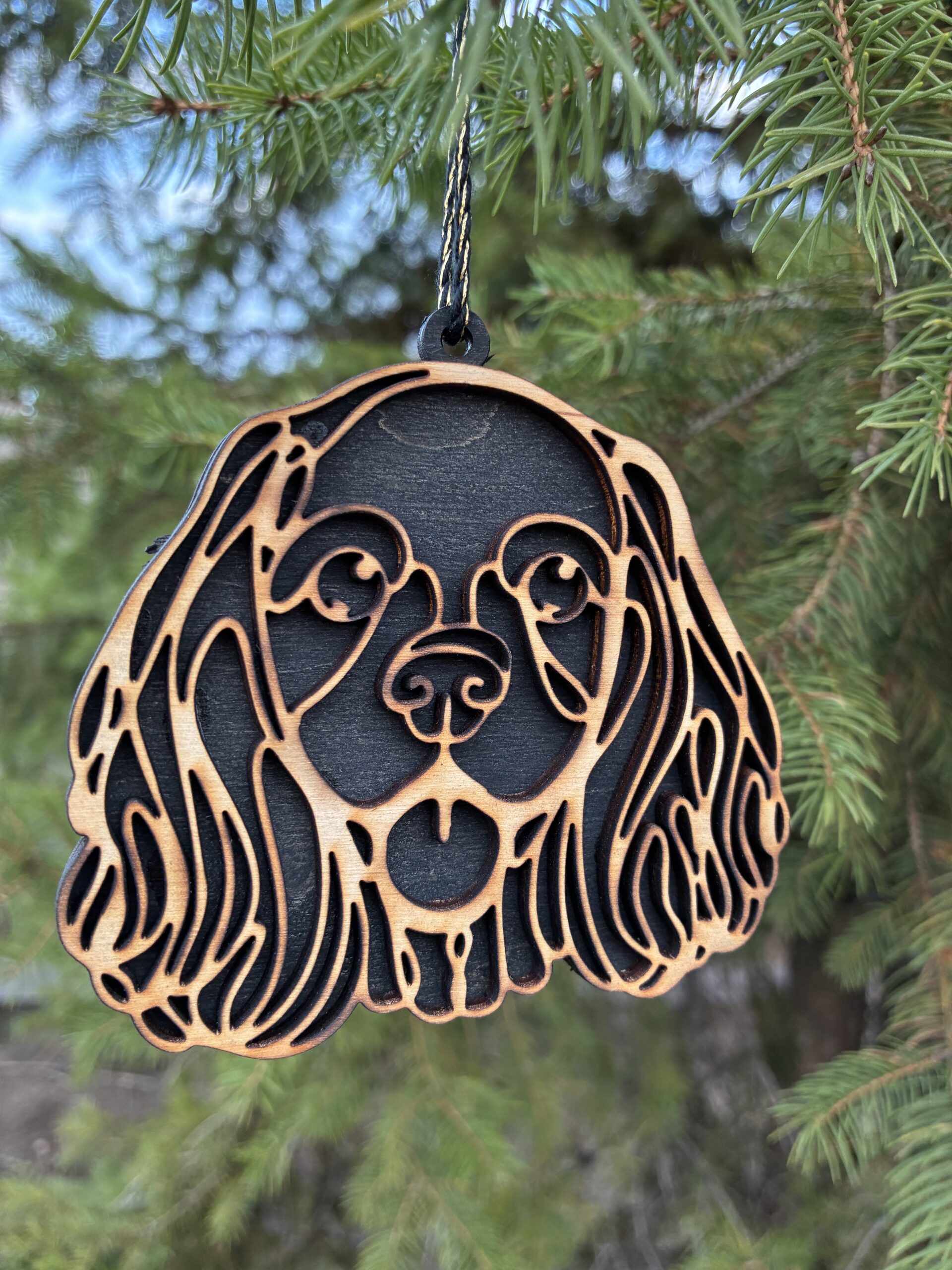 Egyedi, 3D hatású fa kutyás karácsonyfadísz, amely tökéletes választás kutyabarátoknak és gazdiknak az ünnepi dekorációhoz. Kézzel készített, természetes fából készült dísz, precíz lézervágással és kétoldalas kidolgozással. Fekete vagy fehér háttérrel rendelhető, valamint kérhető gravírozott névvel, így igazán személyes karácsonyi ajándék vagy emlék lehet. Körülbelül 9 cm-es méretével ideális karácsonyfadísz, amely meghitt hangulatot és egyedi megjelenést ad az ünnepi dekorációnak.